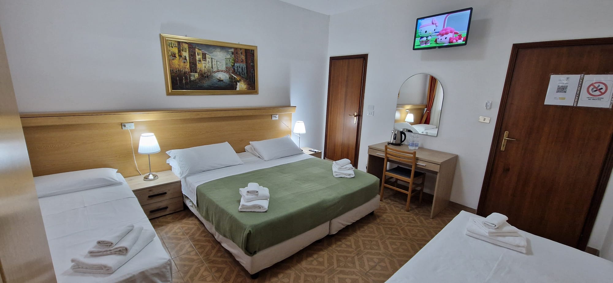This spacious quadruple room is ideal for families, offering plenty of room for everyone to relax. It comes with a private bathroom and free Wi-Fi for a comfortable, convenient stay